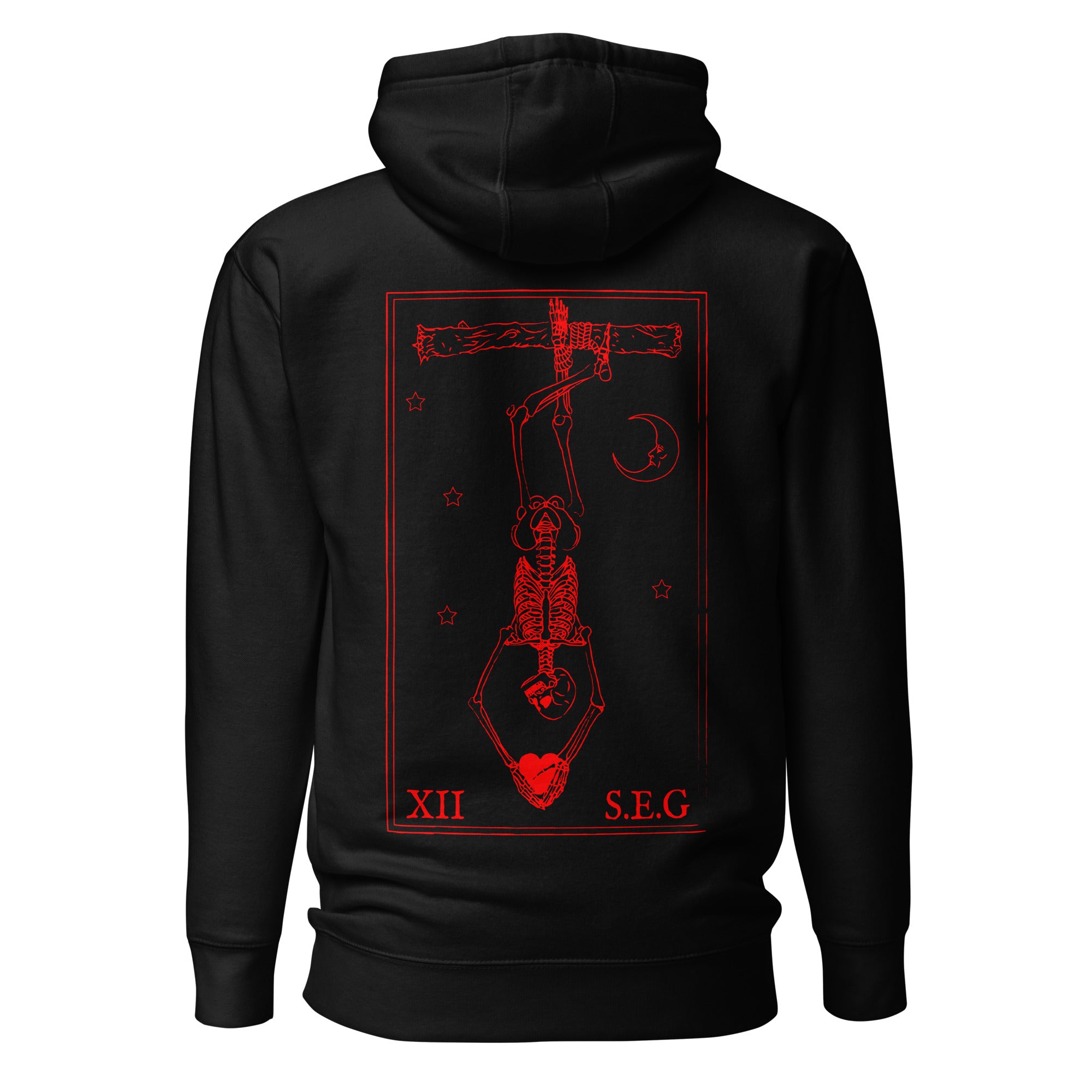 This hoodie runs small, so we recommend ordering one size larger than your usual size for a perfect fit. Show off your commitment to the Sin Eaters Guild with this warm and stylish Hanged Man Hoodie.