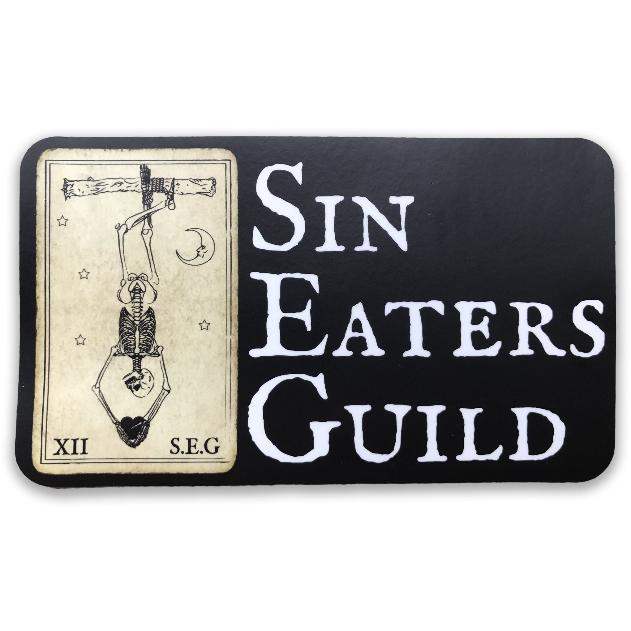 6.3" x 3.69" Bumper sticker featuring the Sin Eaters Guild logo on a black background.