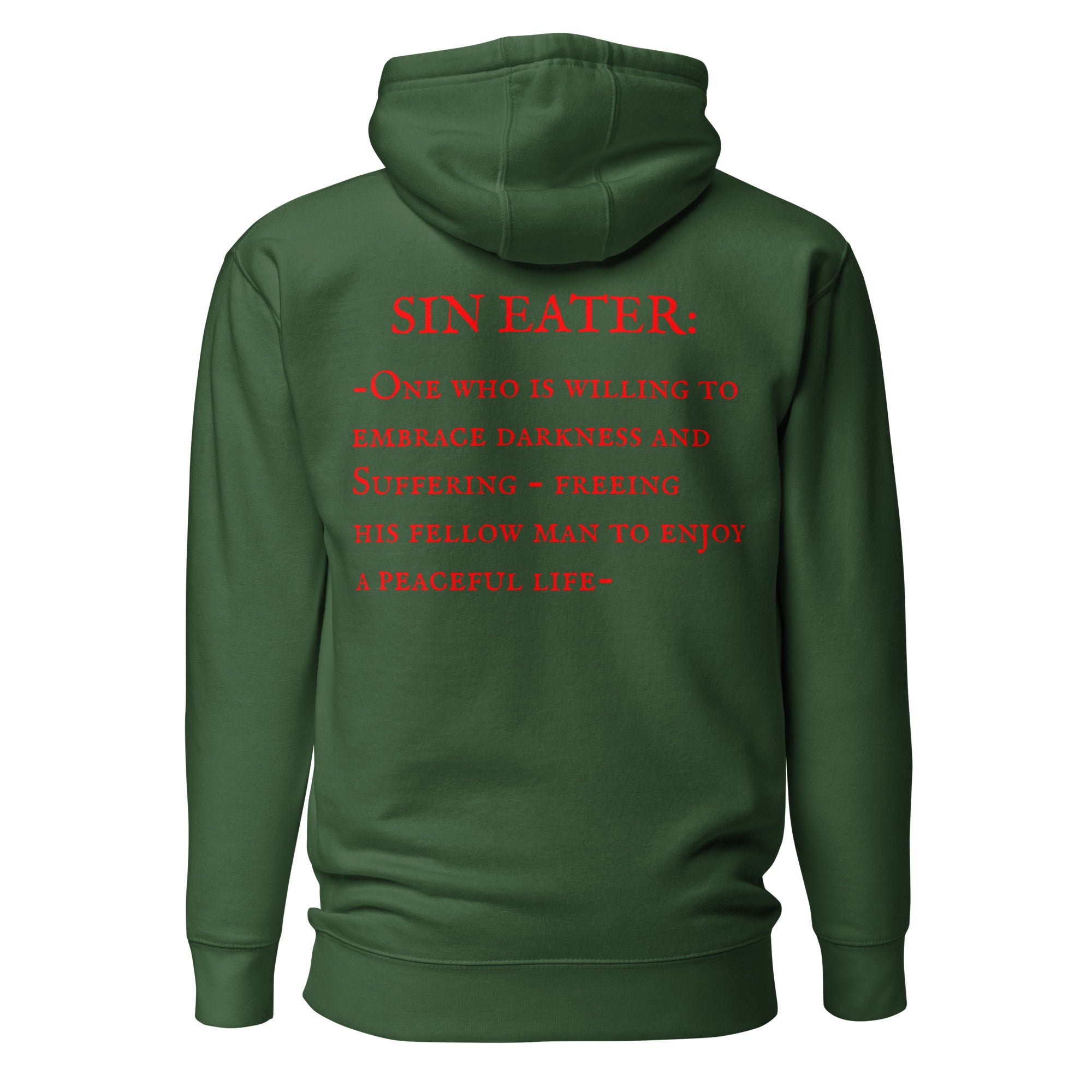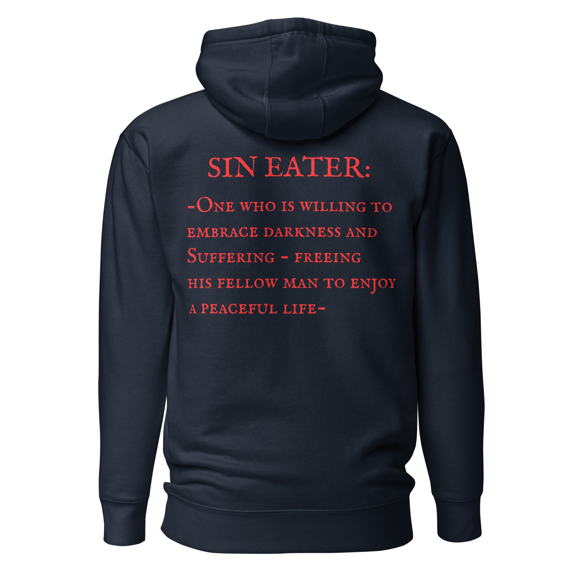 Join the Sin Eaters Guild today and wear our exclusive The Definition design as a commitment to our ethos. This comfortable, 100% cotton face hoodie embodies commitment to a mindset and community that will always move towards hardship and suffering, so that those that cannot or will not don't have to.