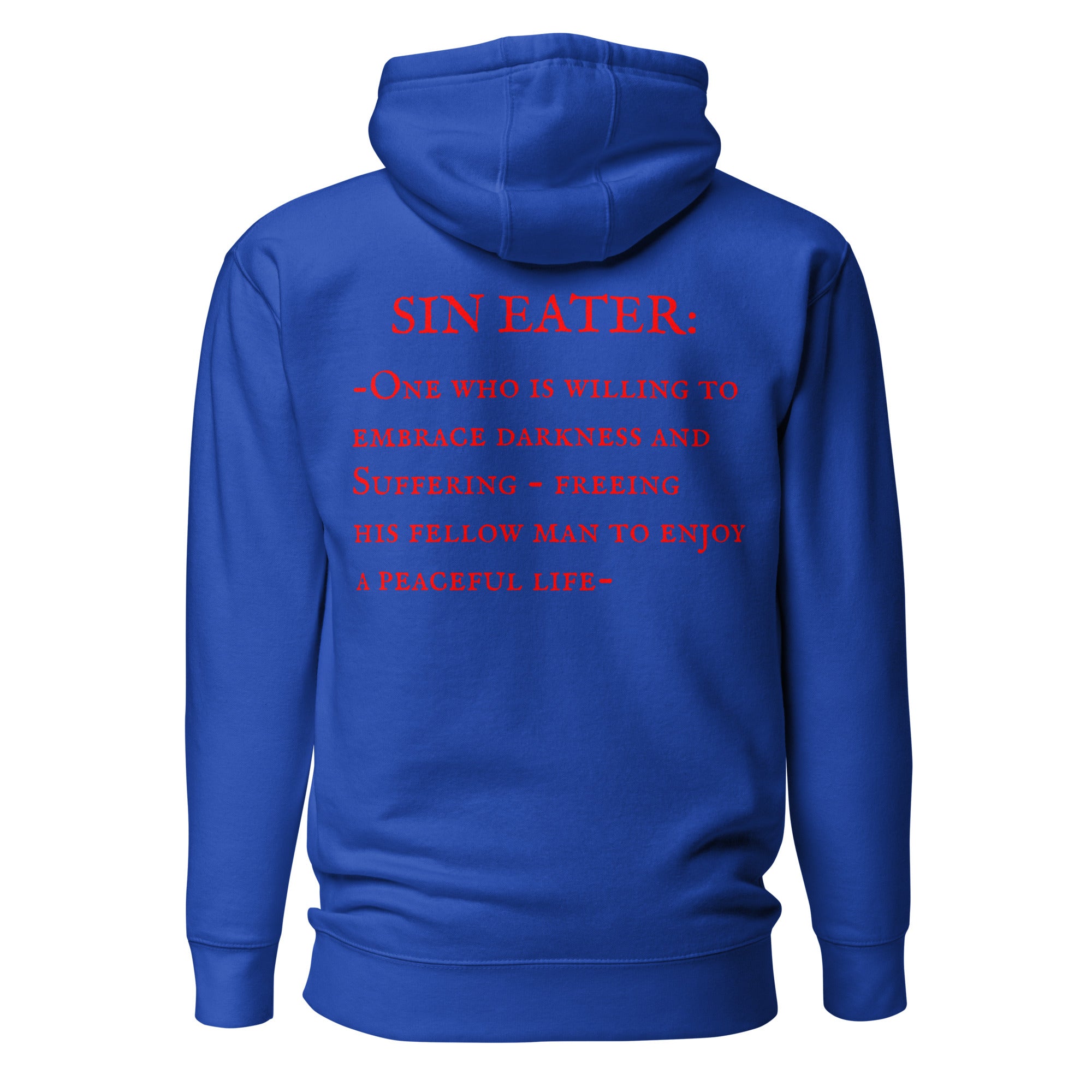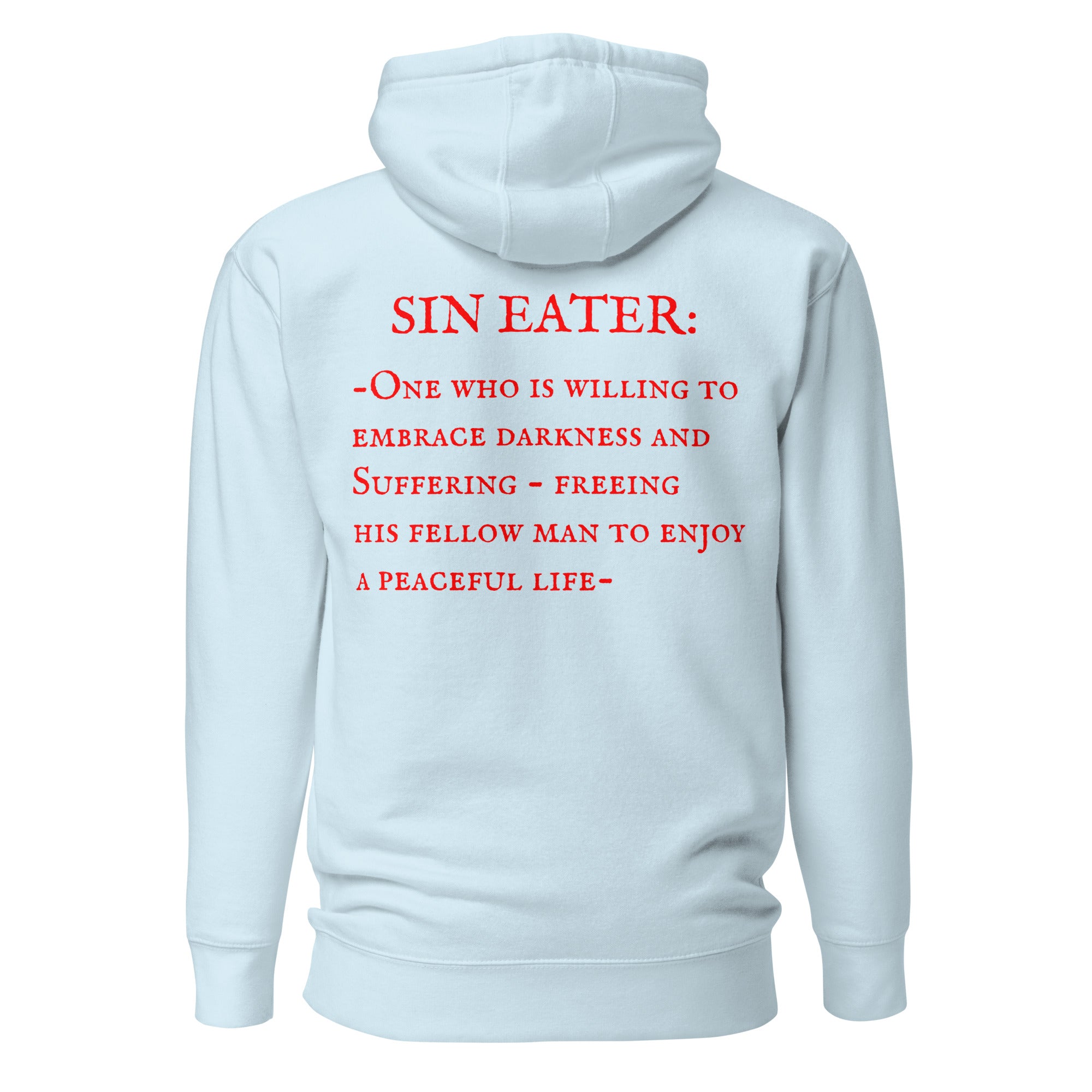 This hoodie runs small, so we recommend ordering one size larger than your usual size for a perfect fit. Show off your commitment to the Sin Eaters Guild with this warm and stylish The Definition Hoodie.