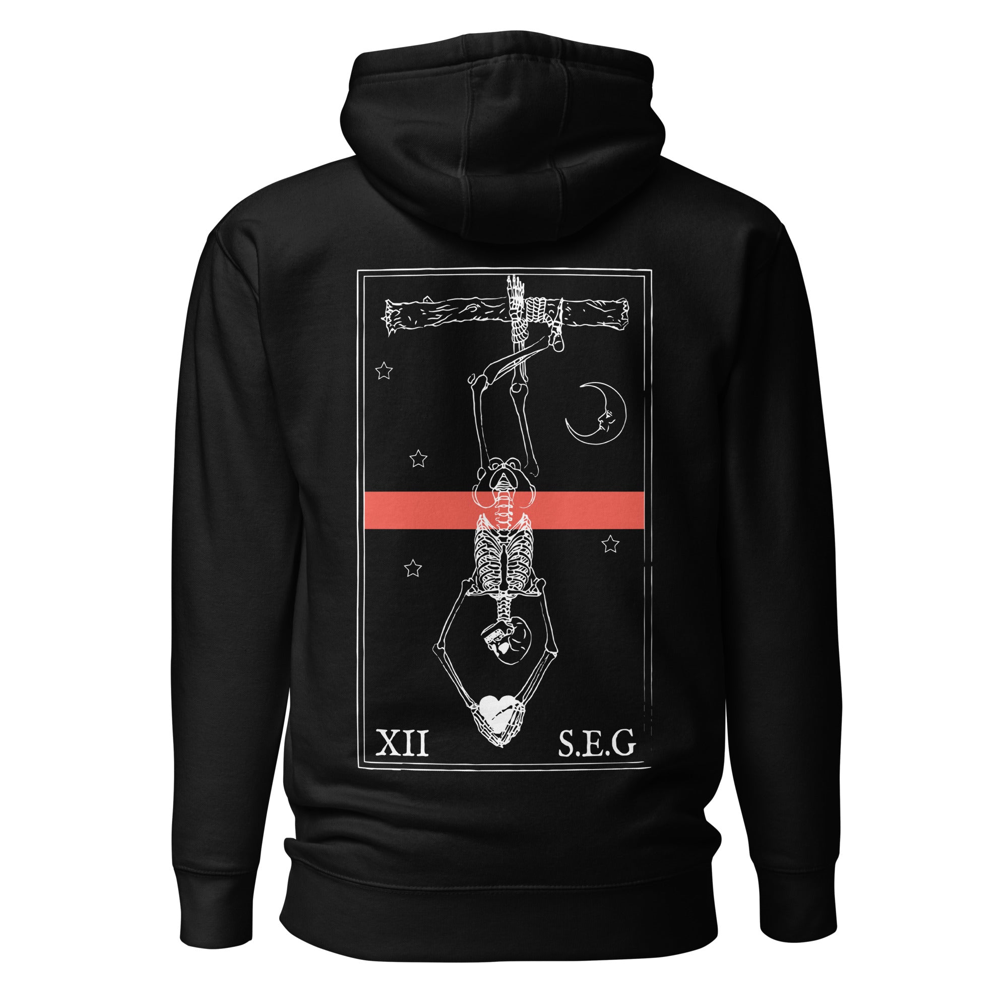 This hoodie runs small, so we recommend ordering one size larger than your usual size for a perfect fit. Show off your commitment to the Sin Eaters Guild with this warm and stylish Hanged Man Hoodie.