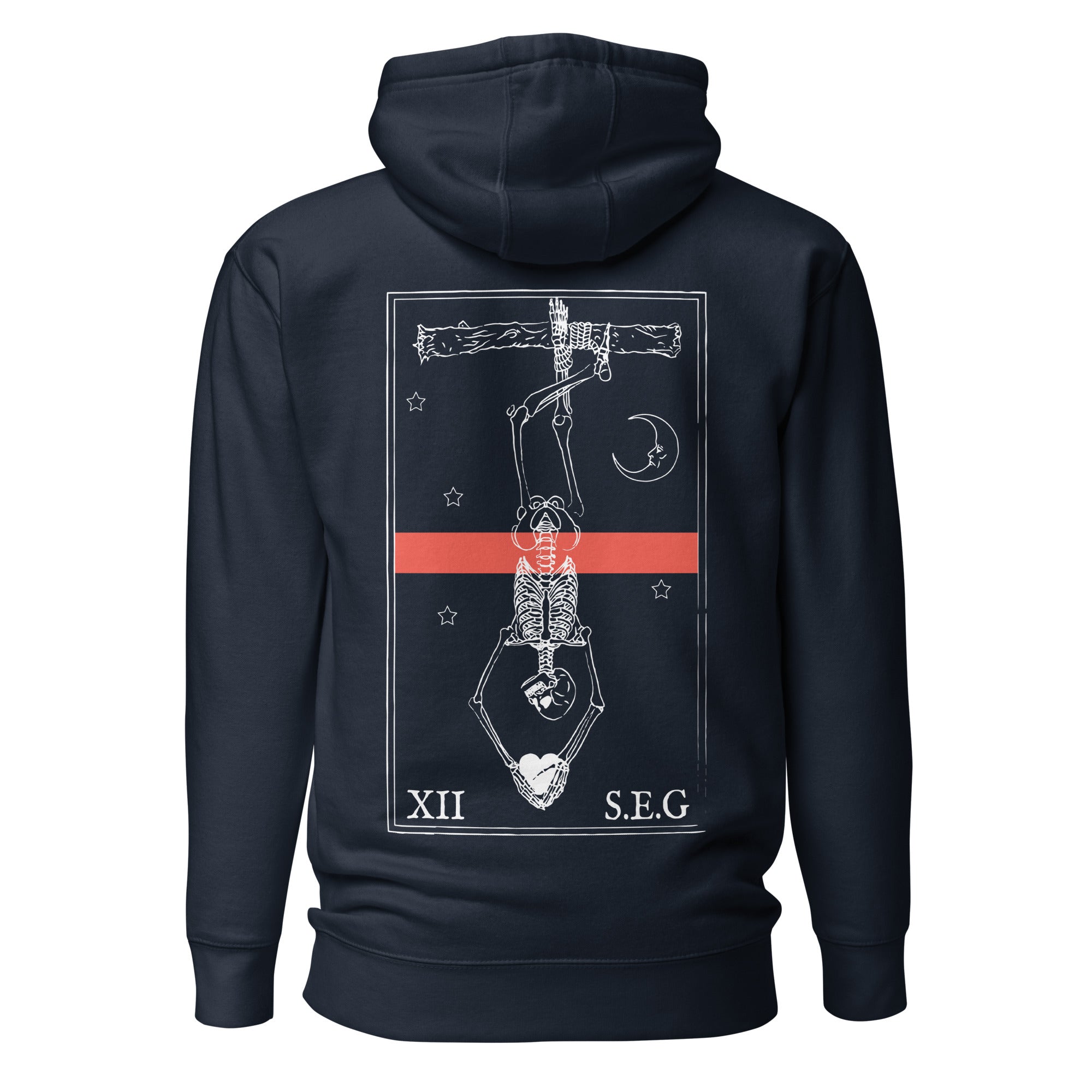 Join the Sin Eaters Guild today and wear our exclusive Hanged Man design as a commitment to our ethos. This comfortable, 100% cotton face hoodie embodies commitment to a mindset and community that will always move towards hardship and suffering, so that those that cannot or will not don't have to.